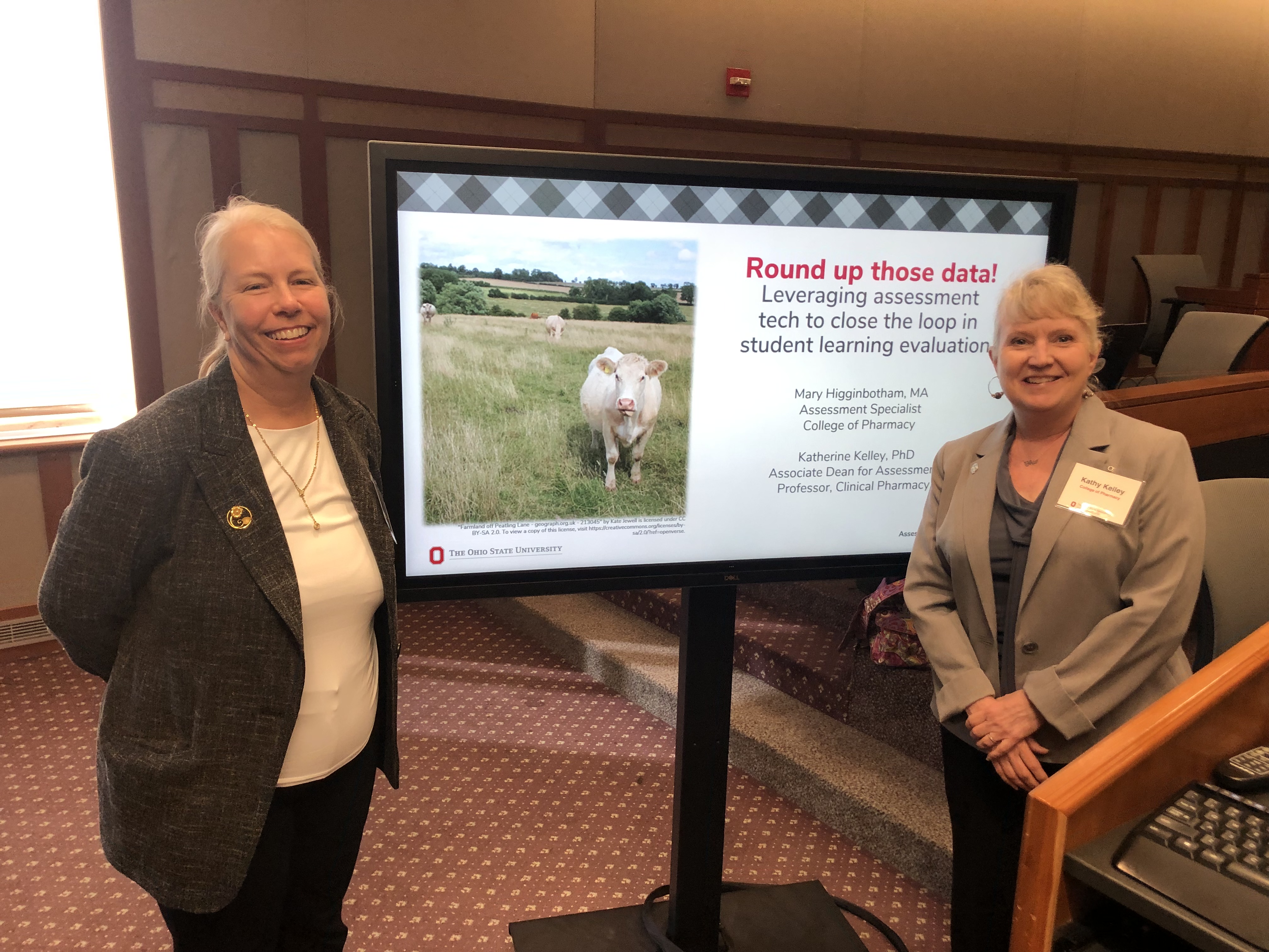 Mary Higginbotham, MA, resource planning specialist, and Katherine Kelley, PhD, associate dean for assessment and professor-clinical pharmacy, presented “Round up those data! Leveraging assessment tech to close the loop in student learning evaluation” in session one of the conference. Their presentation discussed the strategic implementation of available technology to support a program-level assessment. Higginbotham and Dr. Kelley closed their presentation by offering useful tips for supporting your assessment cycle and data-informed decision-making.